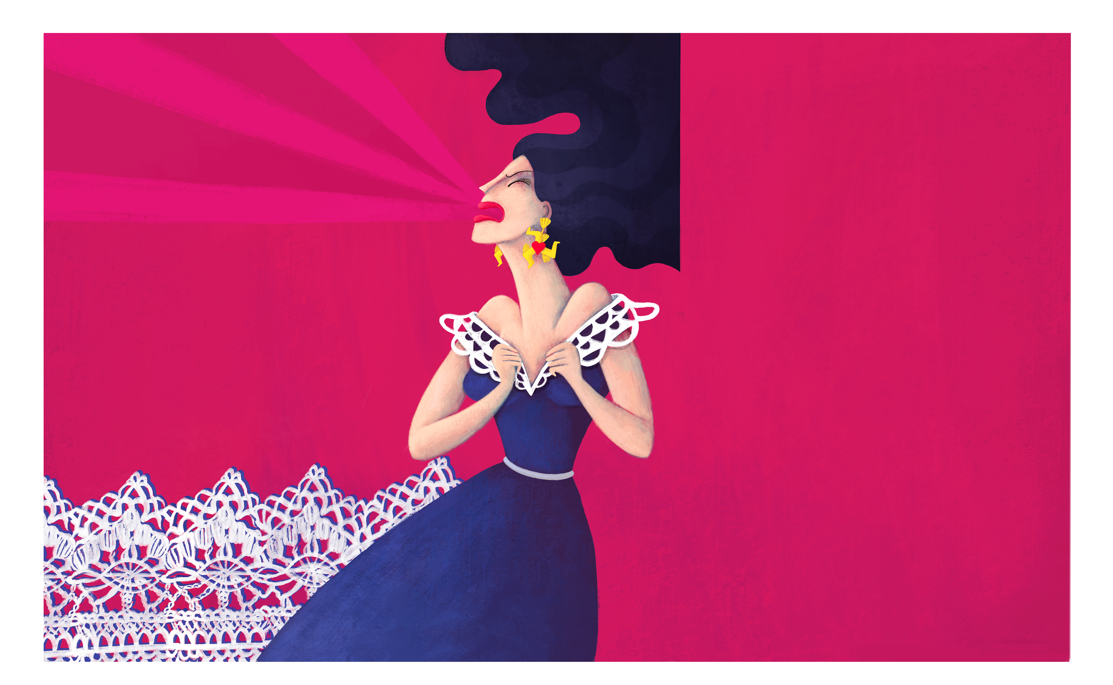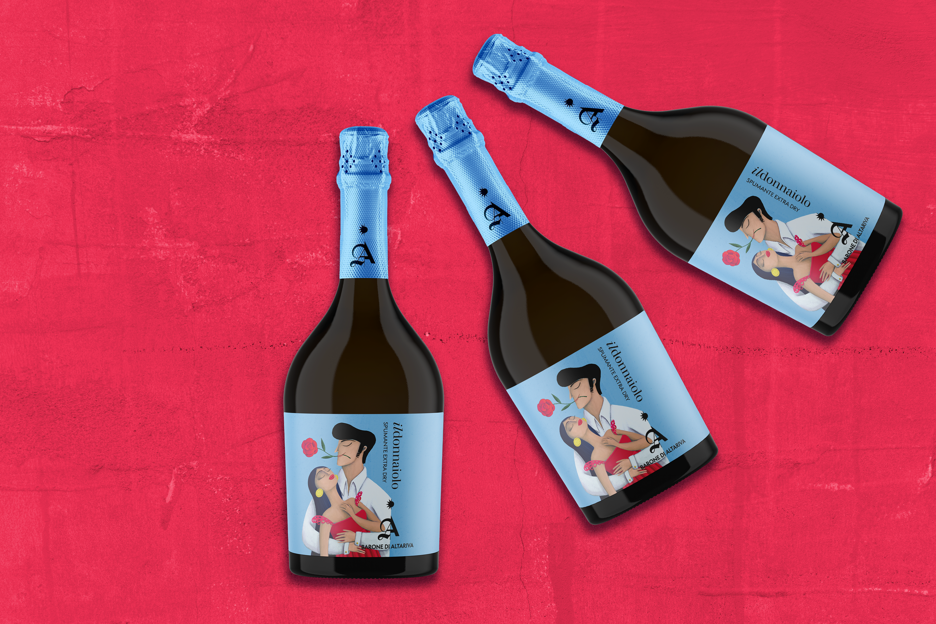Rifacendomi al mondo anzidetto, ho individuato nomi e concetti da rappresentare in altrettanti vini: l’Ingiuria, lo Scongiuro, la Galanterìa, il Donnaiolo. Tinte piatte, solari, siciliane, decori minuziosi, merletti preziosi; un personaggio, uomo o donna, immobile nel suo “gesto”, incarna, anche fisicamente, lo stereotipo del nobile siciliano, in chiave ironica.