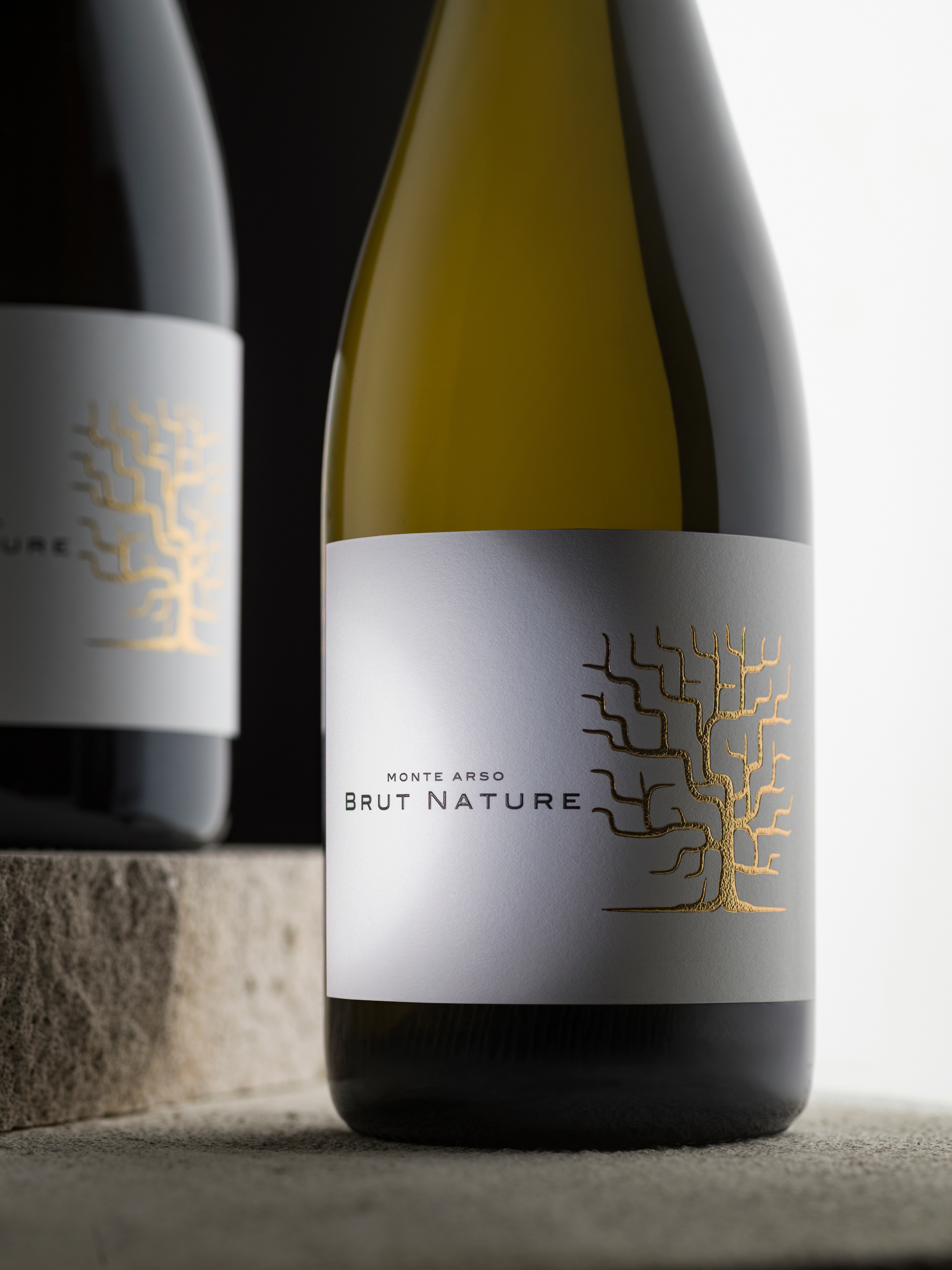 È un'iconografia potente che unisce natura e geologia, vita e materia, in un equilibrio sottile tra fragilità e potenza. La carta naturale e la grafica essenziale riflettono la purezza del metodo Brut Nature, in cui nulla viene aggiunto per mascherare l’essenza.