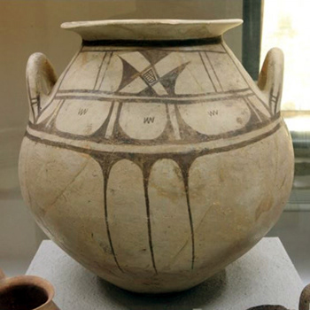 Nella prima età del Ferro (ca. 870 a.C.) è attestata in Italia meridionale una caratteristica produzione di ceramica dipinta. Questo tipo di ceramica possiede un proprio stile, diversificato per distretti regionali e distinguibile da caratteristici stili decorativi geometrici monocromatici, che presenta spesso il cosiddetto ornato “a tenda” e, successivamente bicroma, e campita da un vasto repertorio ornamentale.