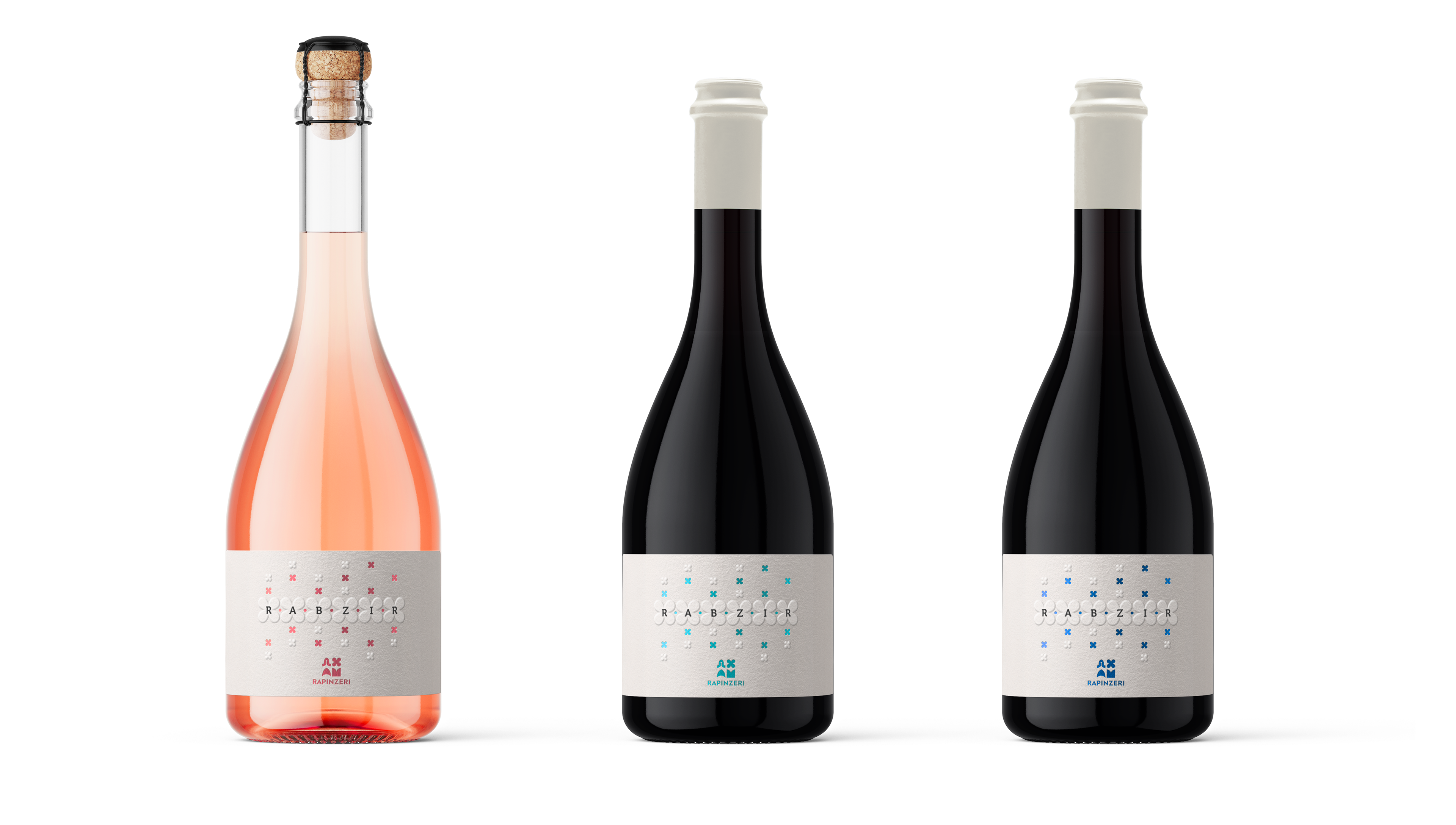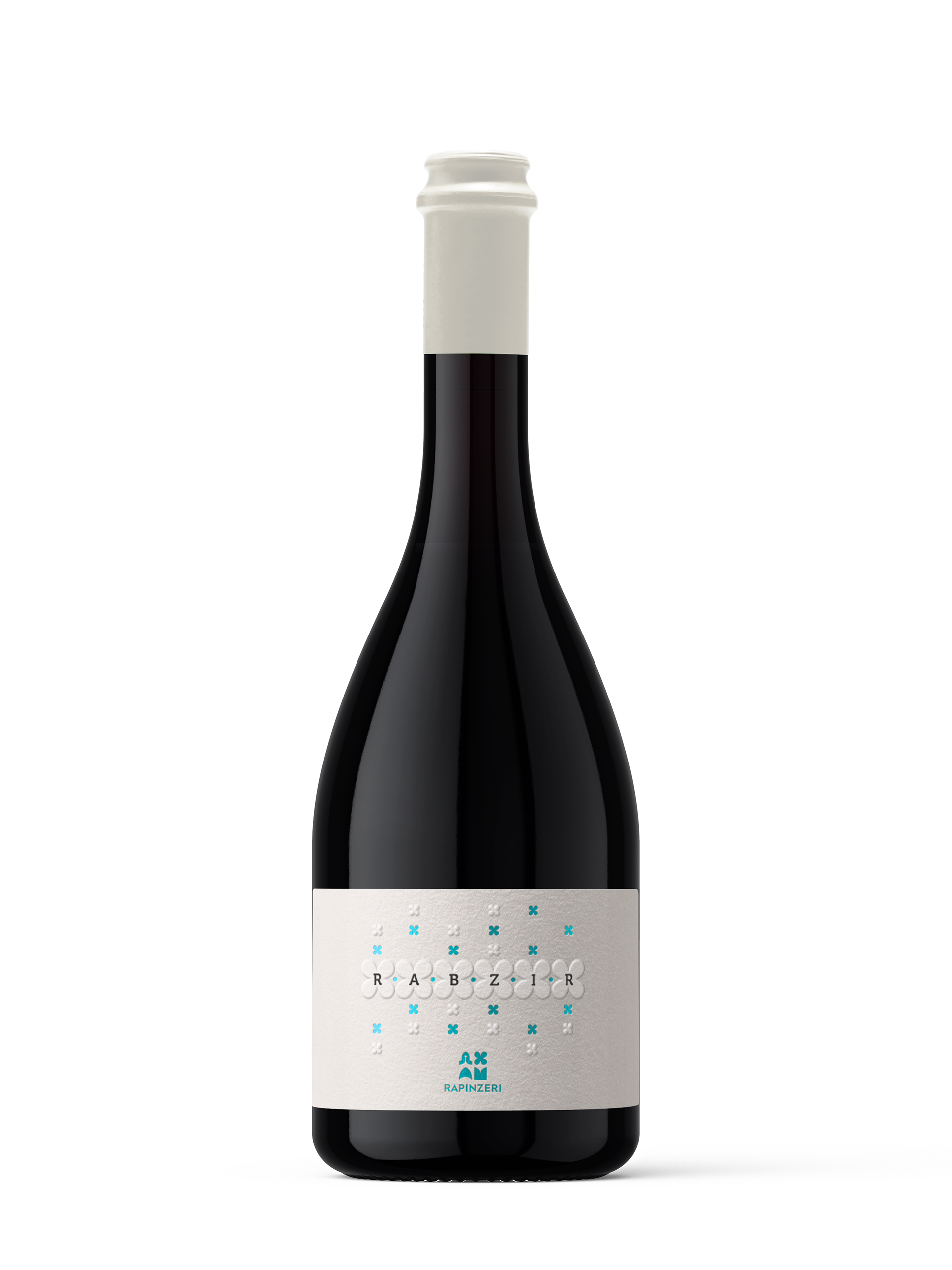 La nuova linea dei vini frizzanti Rapinzeri è caratterizzata da due vini bianchi e un rosato, il progetto delle etichette si sviluppa su uno degli elementi dell'iconografia che rappresenta l'azienda, il fiore, motivo decorativo presente nell'arco a sesto acuto del portale e nelle finestre del castello. L'effervescenza dei vini si esplicita nella texture da esso composta, sfalsata e discontinua nell'alternanza di questo elemento, ora reso con un rilievo a secco molto accentuato, ora con una luccicante lamina colorata. Il nome della linea, RABZIR, è impreziosito dalla lavorazione a rilievo serigrafico opaco, racchiusa nei grandi fiori, sbalzati a secco. La carta, Cotton extra white barrierata, materica e naturale, accentua entrambe le nobilitazioni.